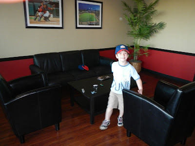 Last Monday, we got the privilege to attend an OKC Redhawks baseball game courtesy of OHSO. Dusty's police department won a challenge and the reward was a suite at the Redhawks game. Pretty fun! We're not usually that fancy or high-class, ha ha.